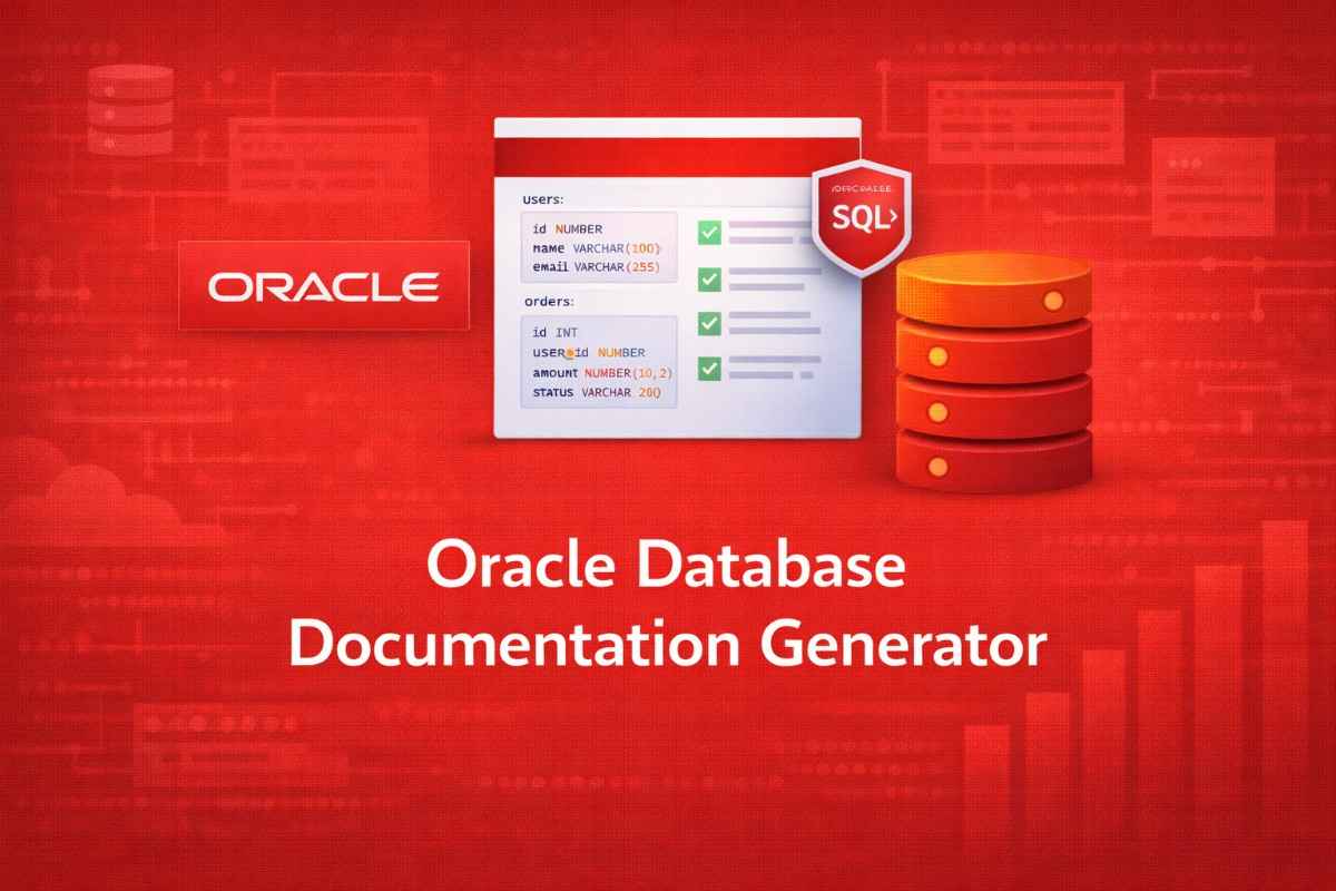 Create Oracle documentation with AI — schema diagrams, PL/SQL logic, dependencies, and security insights. Perfect for onboarding, migrations, audits, and legacy systems.