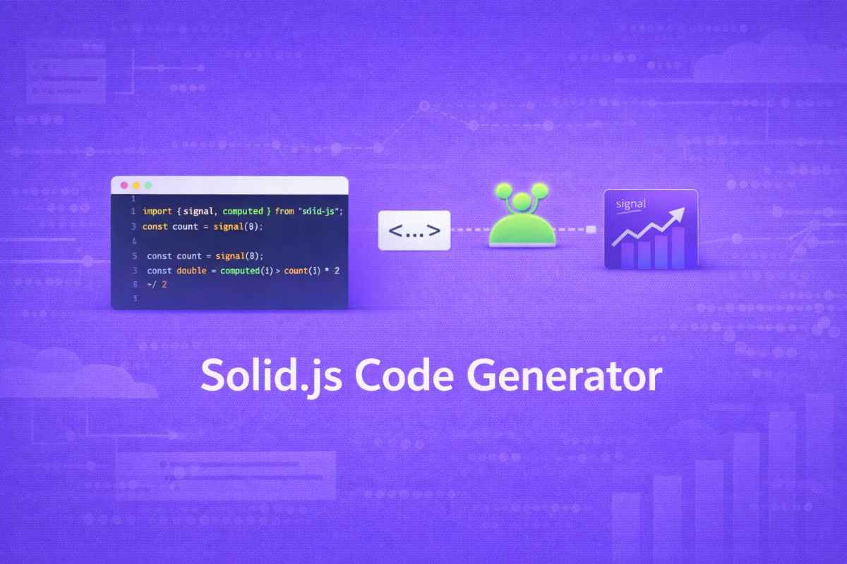 Build, debug, and optimize Solid.js projects with Workik’s free AI-powered code generator. Generate components, connect APIs, and scale apps instantly online.